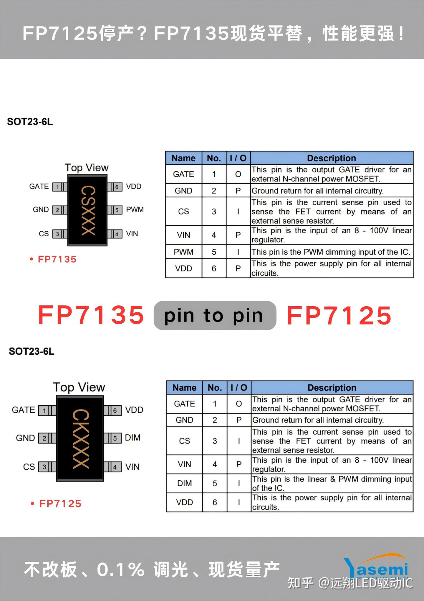核心速览:经典LED驱动芯片FP7125已官宣停产,市场逐步断供;同款封装、引脚完全兼容的FP7135实现pin to pin无缝替代,无需改板、无需重验,现已大规模量产,供货稳定,解决项目缺料、研发改板难题!