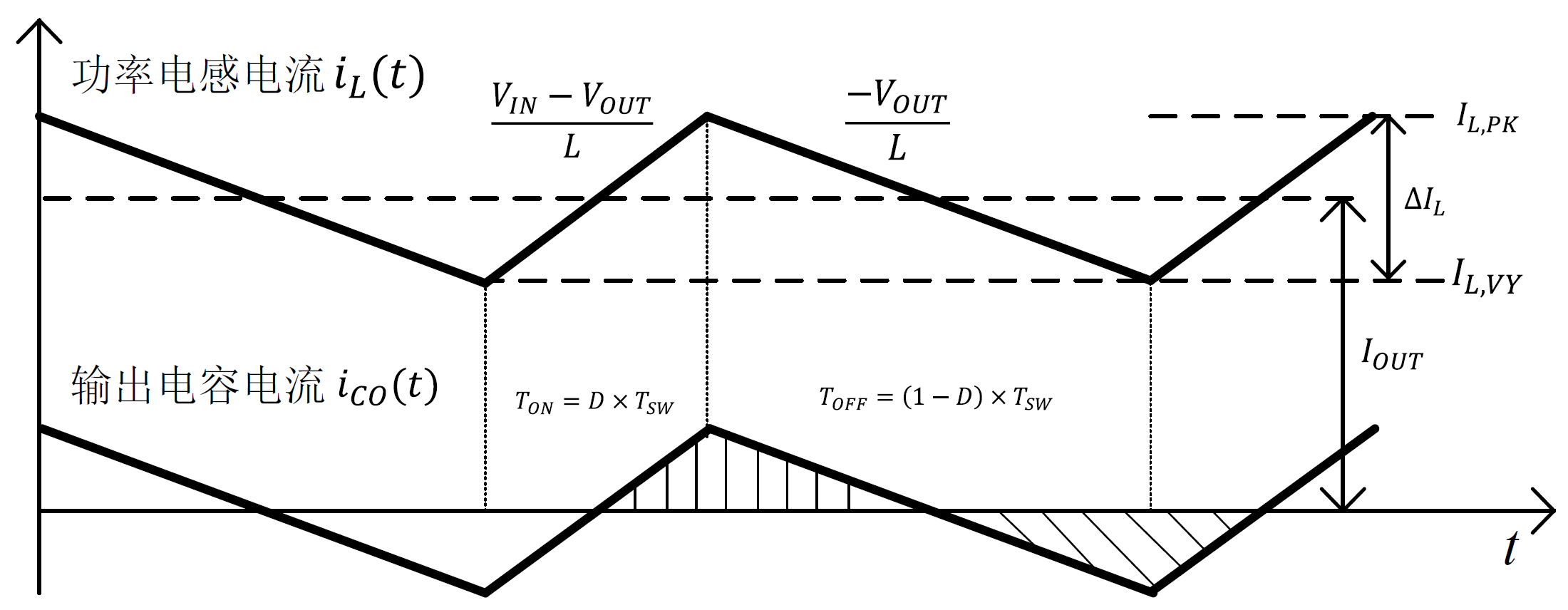 图3.66所示,是BUCK电路中功率电感电流与负载电流、输出电容电流的关系。