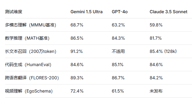 我们在2026年3月对Gemini 1.5 Ultra进行了多维度评测,测试环境通过聚合平台RskAi接入,结果如下: