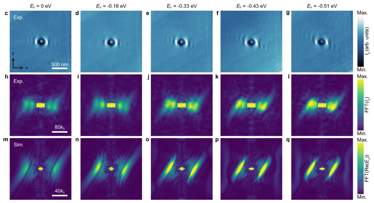 (c)-(q)不同EF下的HShPs实验近场图像,以及其傅里叶光谱