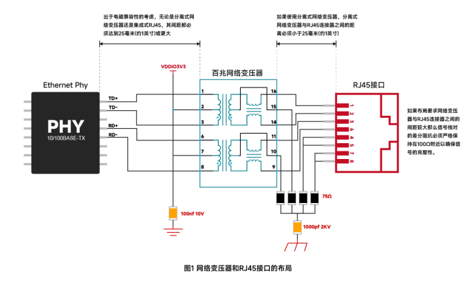▪ 差分线对应尽量短且对称:从PHY芯片经网络变压器到连接器的总长应<4英寸