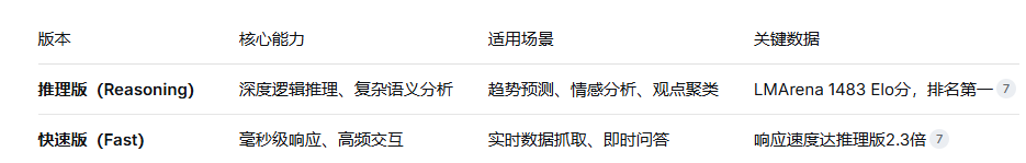 版本选择要匹配任务:实时数据抓选用Fast版,深度分析用Reasoning版,混合使用可以兼顾效率和质量。