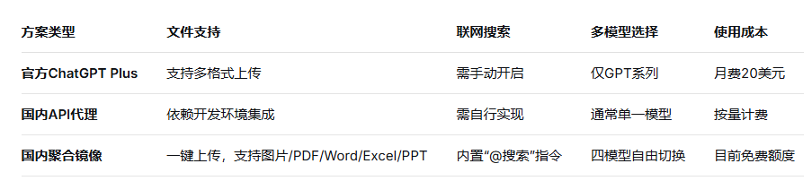 二、方案对比:国内用户获取AI文件处理能力的三种方式