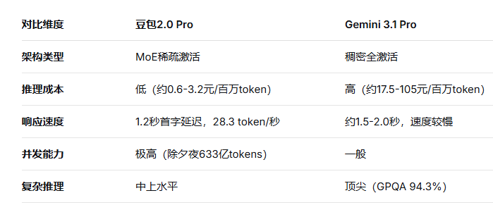 豆包2.0 Pro和Gemini 3.1 Pro代表了两种不同的技术哲学: