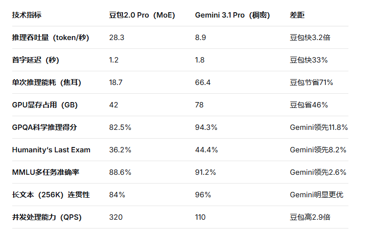 豆包2.0 Pro和Gemini 3.1 Pro恰好是这两条路线的代表产品。理解它们的架构差异,就能理解为何在价格、速度、能力上存在如此大的分野。