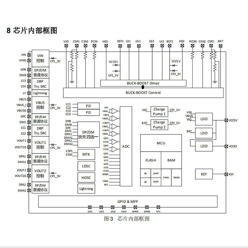 芯片支持2-6节串联电池组,输入/输出功率最高达100W,可为笔记本、平板等大功率设备快速充电。动态功率分配技术可根据设备需求自动调节电流,避免过载或功率浪费,提升能源利用效率。