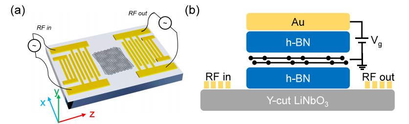 图1.(a)带有谐振腔型 IDT 的 TBG 器件示意图