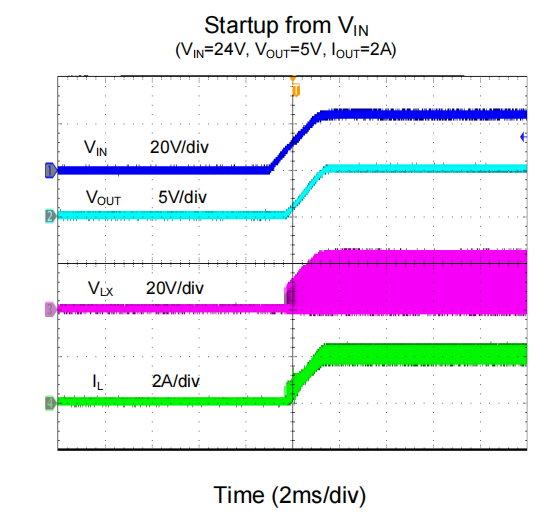 驯服开机浪涌与极端死短路 电源是整个系统逻辑的最后一道防线,任何极端的外部干扰都不应摧毁供电核心。在面对高达五六十伏的母线硬开机或热插拔时,瞬间产生的巨大充电浪涌电流(Inrush Current)足以击穿输出电容或拉垮前端总线。SY8492 内部集成的精准软启动(Soft-start)电路,强制控制上电瞬间的电流平滑爬升,彻底消除了毁灭性的电气冲击。