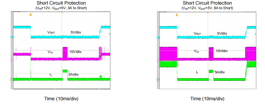 此外,针对极端短路工况,芯片不仅支持智能的打嗝模式(Hic-cup Mode)短路保护,更硬核地加入了可编程的谷值电流限制(Programmable Valley Current Limit)功能。这使得工程师可以根据实际选用的电感饱和电流特性,量身定制过流保护阈值,防止电感发生致命的磁饱和,极大提升了整套系统的抗毁伤能力。