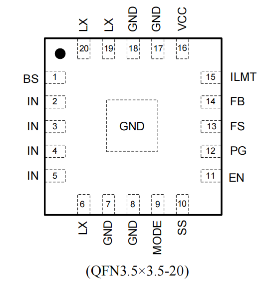 图二:极限微缩,高功率密度下的 QFN-20 引脚布局与底部散热设计