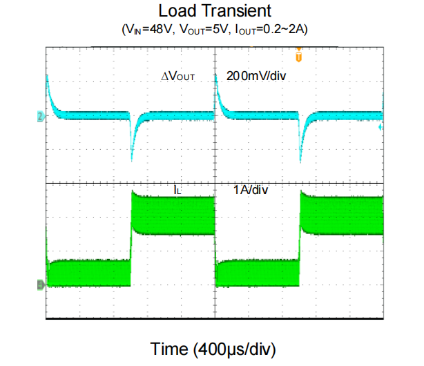 (3)不仅有效抑制了输出电压的过冲与跌落,且外围无需复杂的RC补偿网络,极大降低了环路调试的复杂性。