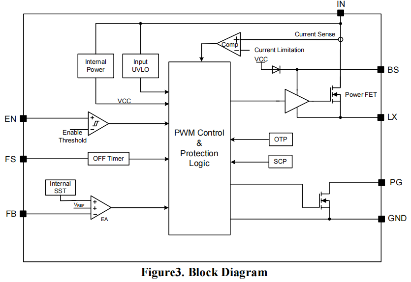 (1)芯片内部集成了经过特殊耐压优化的高侧 N 沟道主功率 MOSFET。