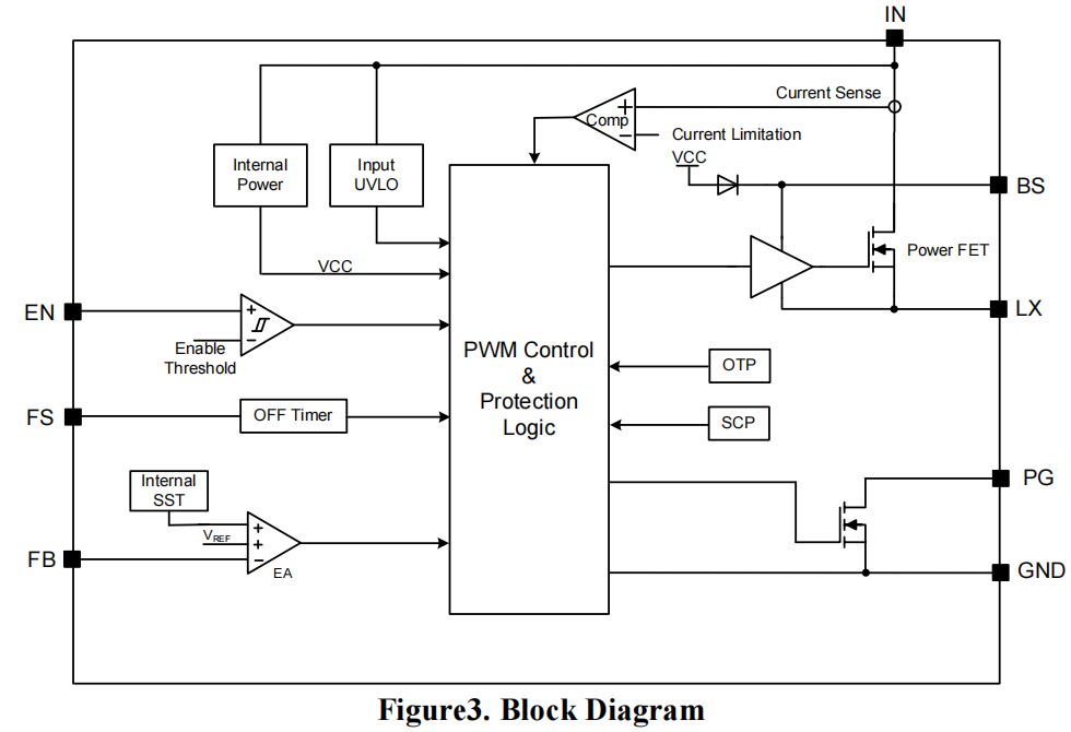 (1)强悍的内部功率架构,使其能够在全温度范围内稳定提供3A的连续输出电流。