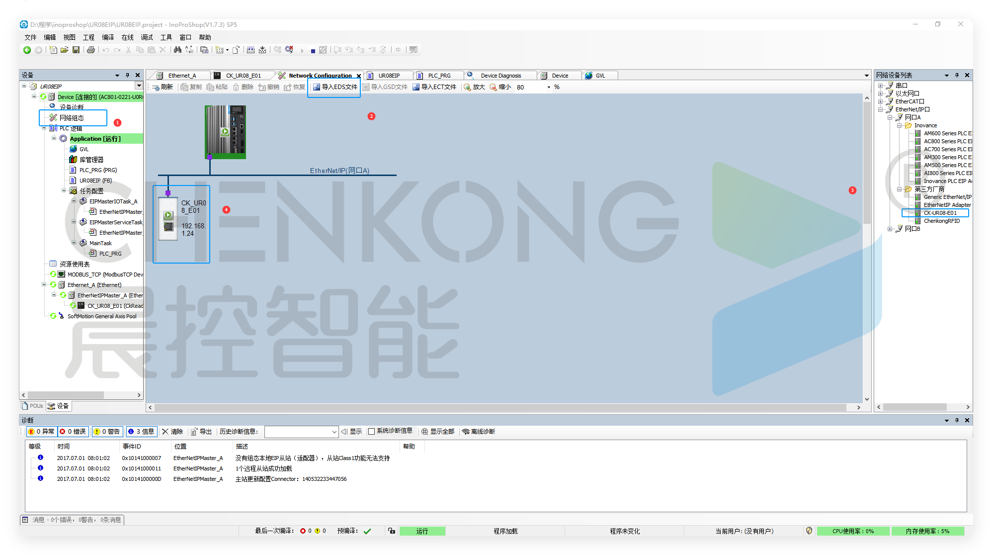 本期主题:围绕CK-UR08系列产品的EtherNet/IP通讯协议与汇川PLC进行通讯配置说明。