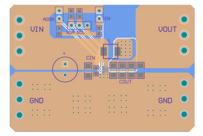 图注:官方倾情提供的 PCB 覆铜参考。只要照着这个大面积铺地、缩短环路的方案画板子,大电流跑起来稳如泰山。