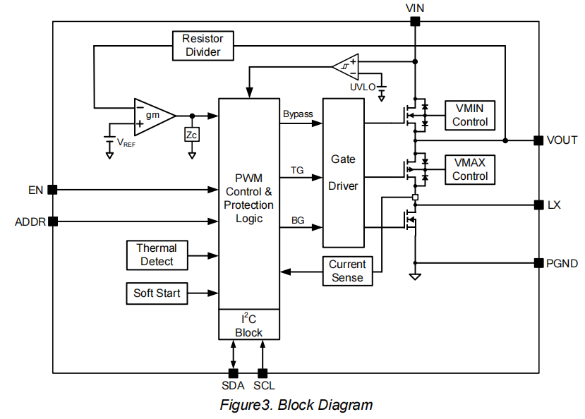 图注:仔细看规格书中的内部架构,芯片内置了极其复杂的逻辑控制单元和强悍的数字通信模块,它不只是个电源,更是一个智能供电管家。