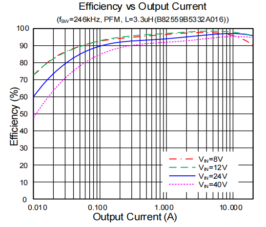 (3)为了兼顾节能,它在干重活时跑 PWM 模式(纹波极小);在设备待机时,自动切入 PFM 模式(极度省电)。这种全场景自动适应的能力,让它的效率曲线极其漂亮。