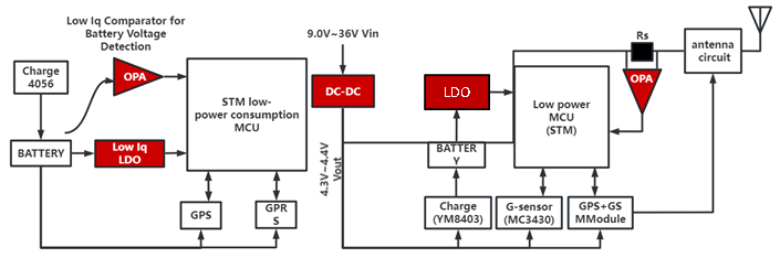 当前车载GPS定位终端面向12V/24V车载工况规模化应用,终端需长期耐受宽电压波动、高低温交变与复杂电磁干扰,同时兼顾低功耗值守与定位信号高精度采集。行业普遍面临三大技术痛点:车载宽压输入适配能力不足、电源转换效率与静态功耗难以平衡、电池电压监测与传感器信号调理精度不足,直接影响终端运行稳定性、定位准确性与续航能力。