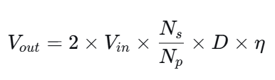 匝数比决定输入输出之间的电压关系。对于推挽拓扑: