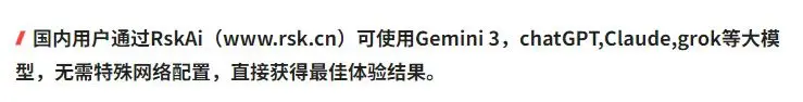 答:国内用户最便捷的方式是通过聚合镜像平台RskAi。该平台国内可直接访问,聚合了Gemini 3.1 Pro、GPT-5.4、Claude 4.6等多款模型,无需特殊网络环境,支持文件上传和联网搜索,每日提供免费额度。