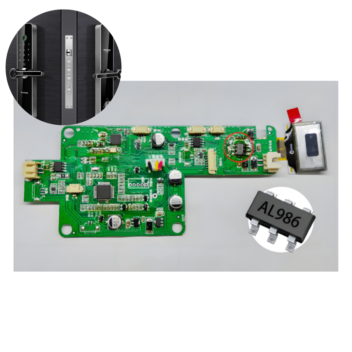 FP6291支持0.5A至2.5A输入限流灵活调节,可根据门锁电机的实际负载需求,通过外接电阻调整限流参数,既能适配低功耗待机场景,又能从容应对电机启动瞬间的大负载冲击,确保电压稳定,开锁动作流畅无卡顿。更重要的是,芯片内置过温、过流、欠压多重保护机制,当电路出现温度过高、电流异常、输入电压过低等异常情况时,会自动启动防护功能,有效保障门锁电路安全。