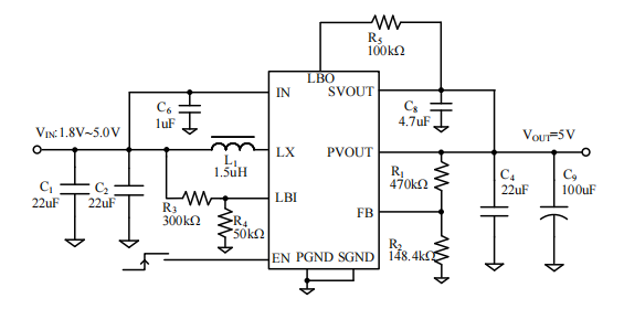 (1)支持低至1.8V的最小输入电压启动,完美契合锂电池放电末期或双节干电池的电压特性。
