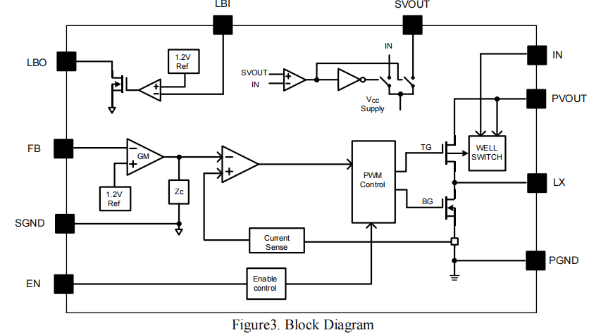 (2)具备典型值高达6V的输出过压保护(OVP)机制,在异常情况下迅速切断输出,防止后级核心电路被高压击穿。