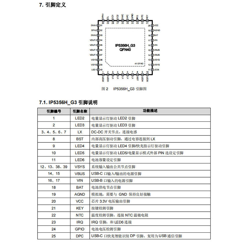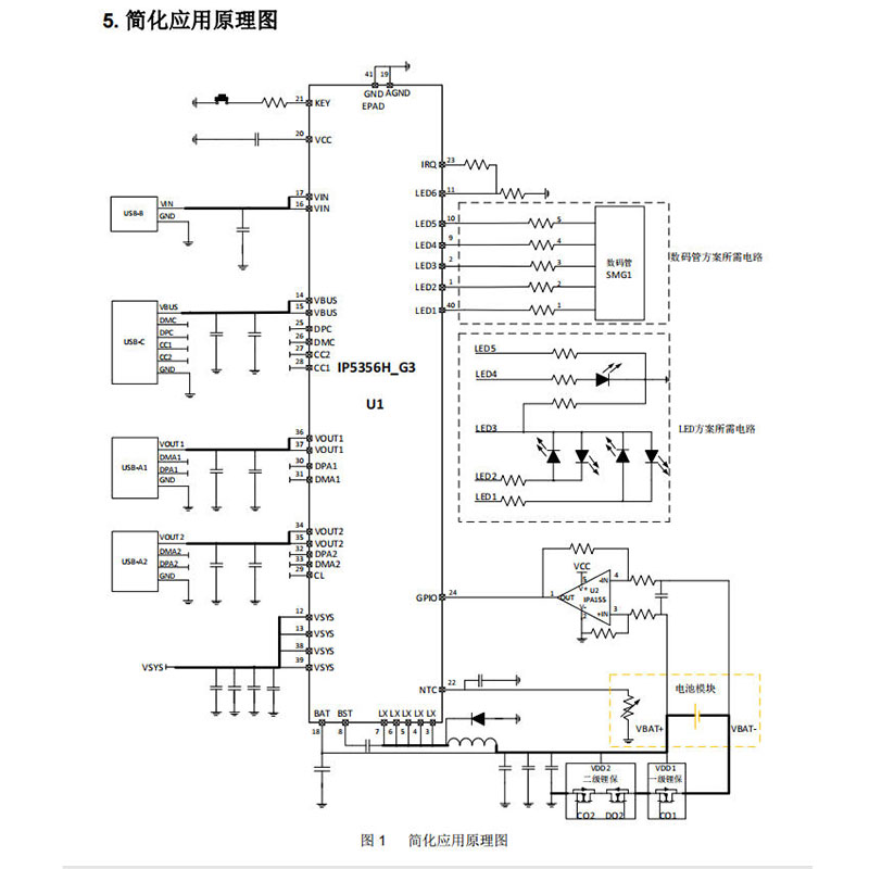 电量计量方面,IP5356H_G3内置14bit ADC,电量计量误差小于1%。支持1-4颗LED指示灯显示电量,也可搭配外接驱动实现88/188等段码显示。