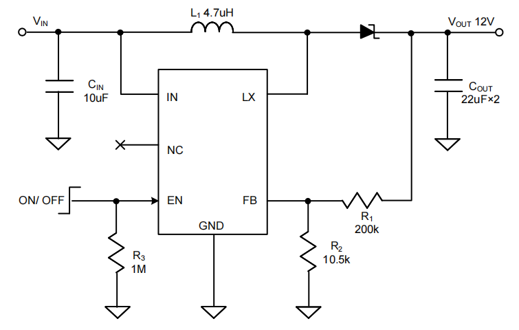图2:SY7304极致精简的升压外围典型电路推荐