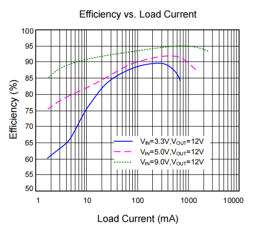 图1:SY7304在不同严苛电压跨度下的卓越转换效率