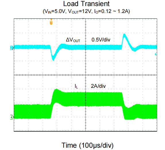 图3:突发大电流负载阶跃下的极速瞬态响应波形