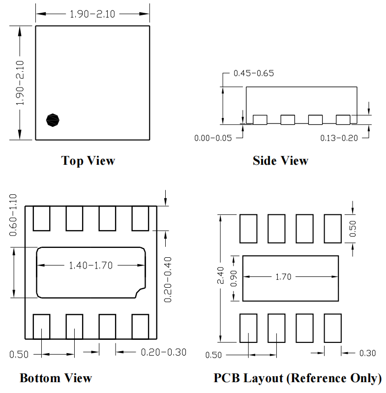 图4:SY8003/SY8003A高导热DFN2×2-8超微型封装尺寸图