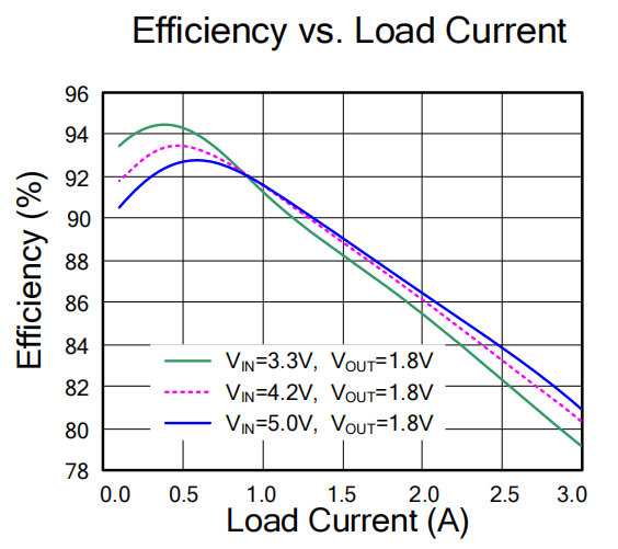 (1)芯片主控级锁定在1MHz的固定开关频率(1MHz switching frequency),这种超高频设定的直接物理收益,就是大幅降低了外部储能电感和滤波电容的感值与容值需求。