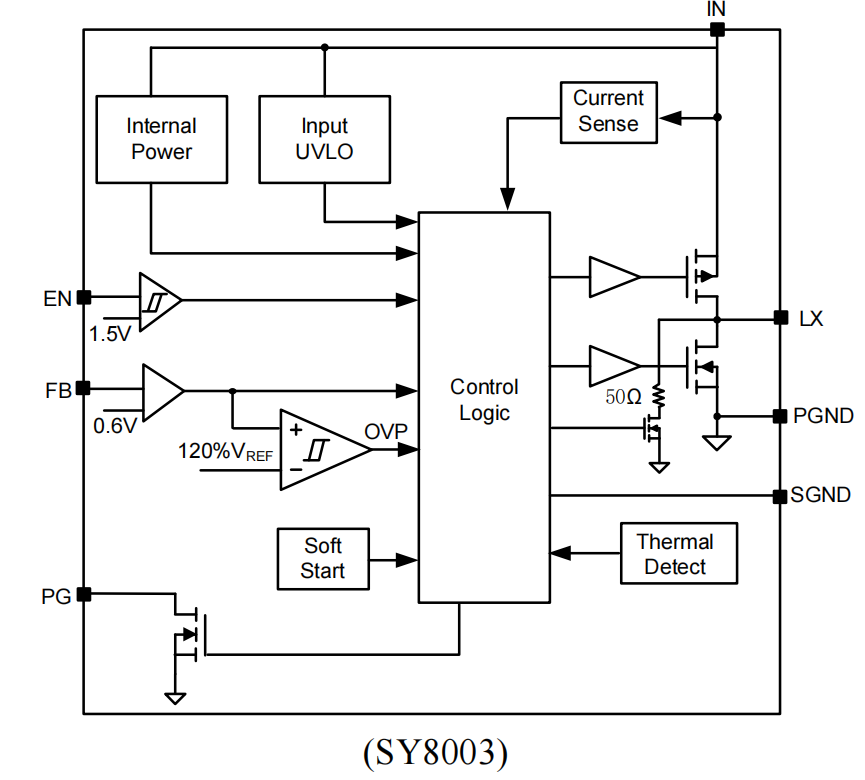 图5:SY8003/SY8003A内部原生高集成度逻辑架构框图