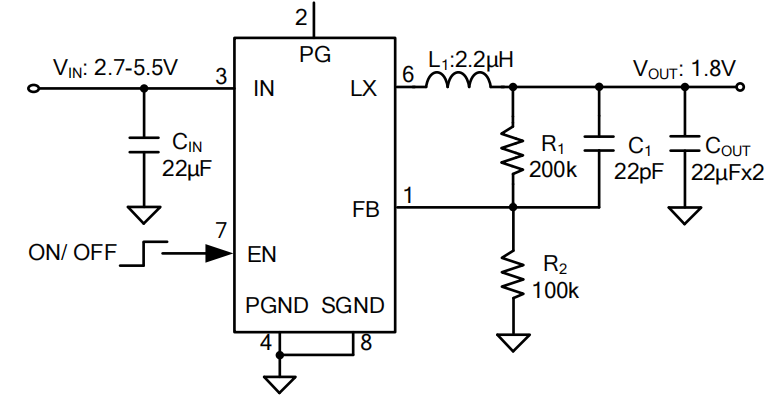 图2:SY8003/SY8003A极致精简的同步降压典型电路