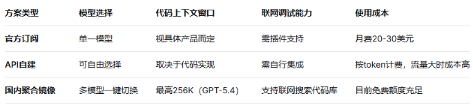 方案对比:国内开发者获取AI编程能力的三种途径
