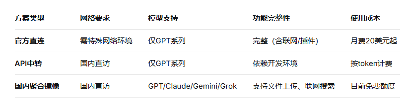 二、方案对比:国内用户访问ChatGPT 5.4的三种主流方式