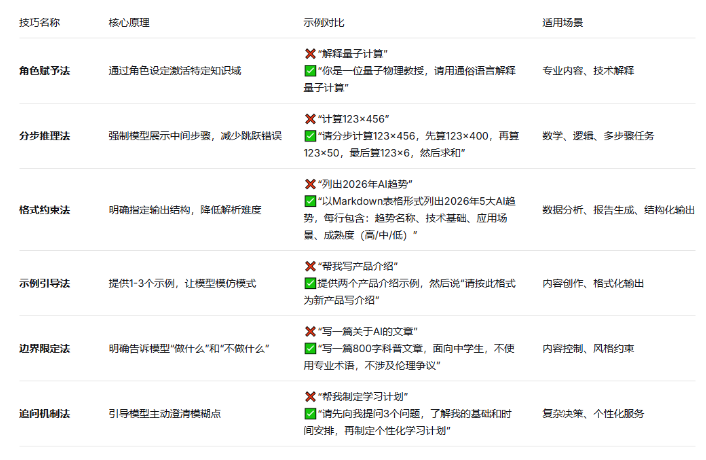 效率提升:精准的提示可减少反复追问,单轮对话完成复杂任务