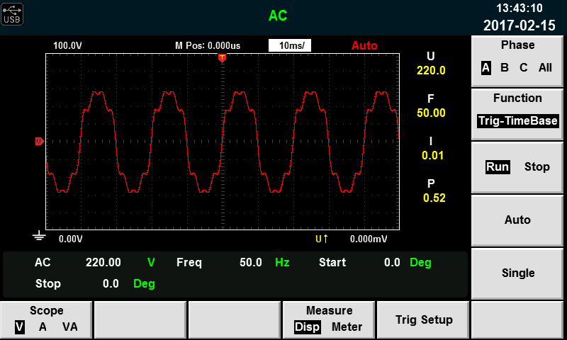 7"DSO高清大屏实时显示电压,电流,有功功率,无功功率,视在功率等实测参数,效率测试只需将输出端的负载功率除以IT7600显示的有功功率即可得到。