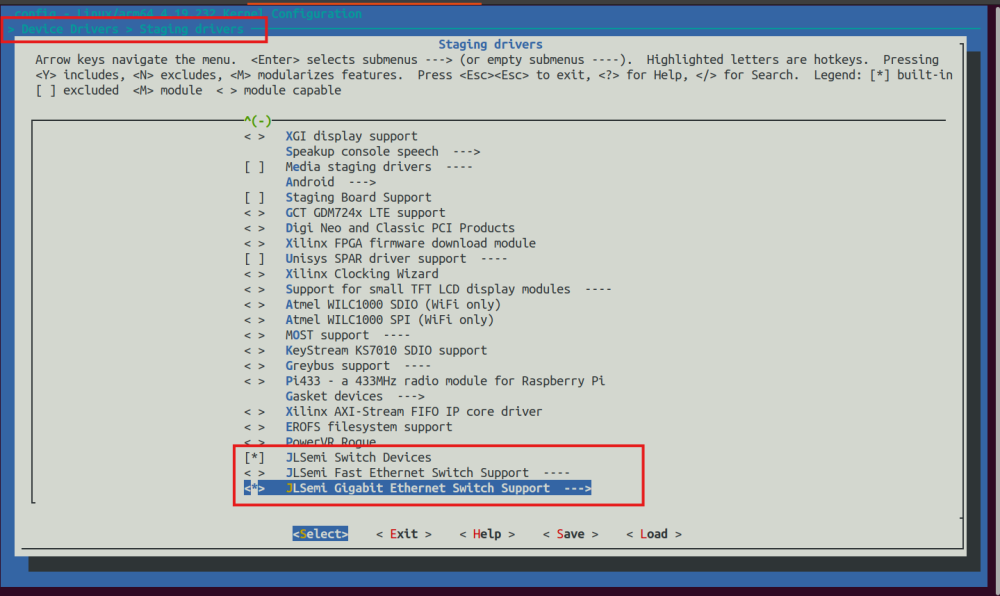 Device Drivers → Network device support → Ethernet driver support →JLSemi Switch Support → SMI interface