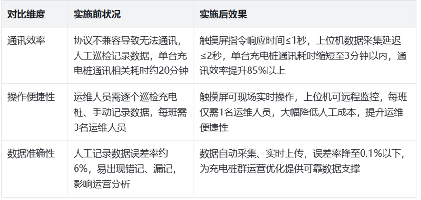 辅助功能:支持设备状态实时监测,可通过配置工具查看模块运行状态,便于运维人员及时排查通讯故障;支持固件在线升级,一次购买可永久升级,适配后续充电桩群扩展需求;不占用PLC编程口,可同时实现编程软件、上位机、触摸屏并行通讯,互不干扰。