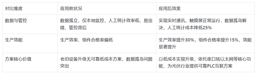 本方案通过捷米特ETH-S7200-JM02 Plus桥接型模块,破解S7-200与S7-1200协议、接口兼容难题,不影响触摸屏运行,实现新旧设备协同。方案依托串口转以太网、以太网转换器、以太网桥接器核心价值,以低成本、高稳定完成升级,解决光伏行业数据孤岛,提升效率、降低成本,为工业老旧PLC升级提供可复制方案。