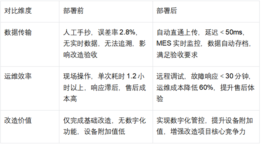 运维效率低下,成本偏高:PLC程序调试、故障排查需工程师到现场,通过专用PC/PPI电缆连接设备操作,单次运维耗时2小时以上,每月运维成本约3500元,无法实现远程快速响应,设备故障易造成机床停机,影响改造后设备的正常交付与使用,难以满足非标改造项目的售后运维要求。