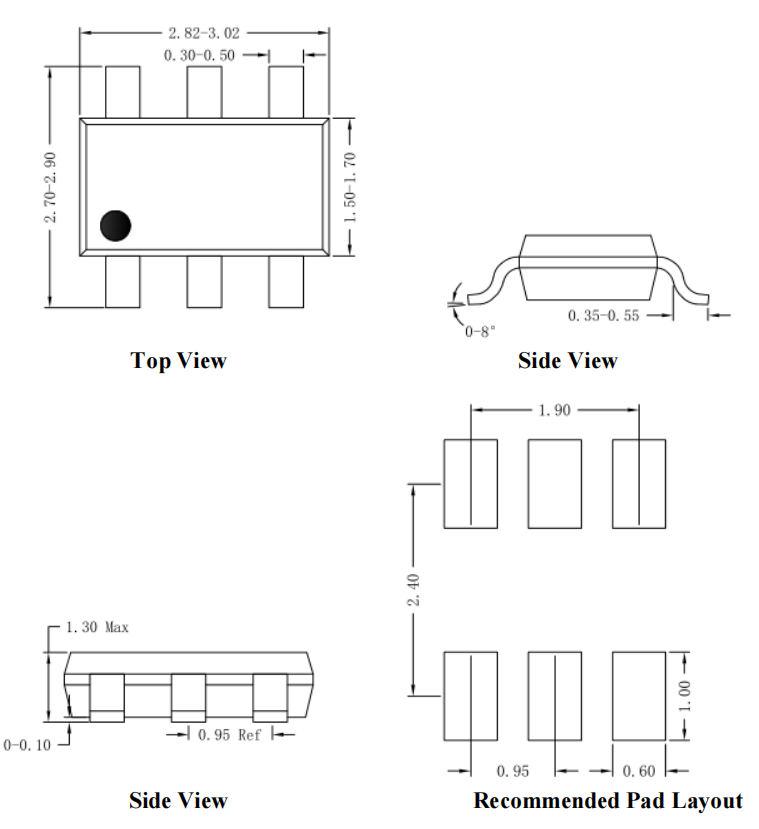 图5:SY8301高密度SOT23-6微型封装尺寸图