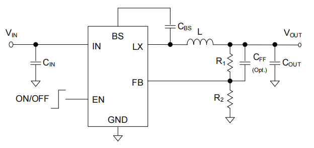 图1:SY8301极致精简的同步降压典型应用电路