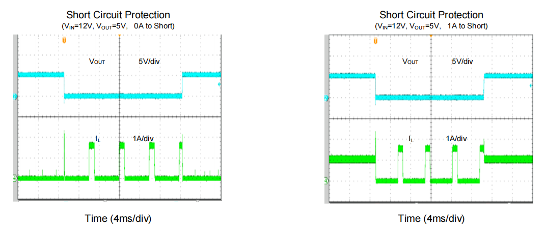 图4:SY8301打嗝模式(Hic-cup)极速短路保护与恢复波形