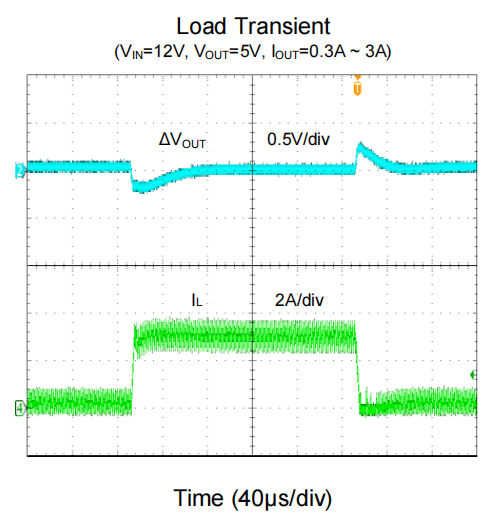图3:突发3A大电流阶跃下的极速瞬态响应波形