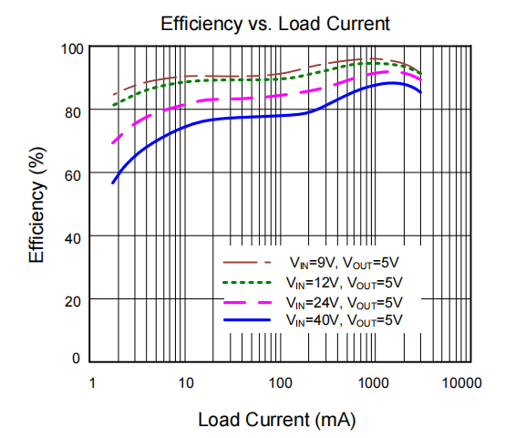 图2:SY8303A在40V压差工况下的卓越转换效率曲线