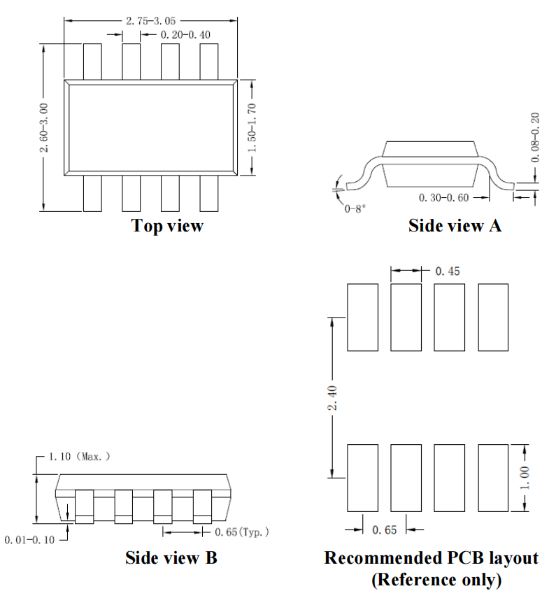 图5:SY8303A高密度TSOT23-8微型封装尺寸图