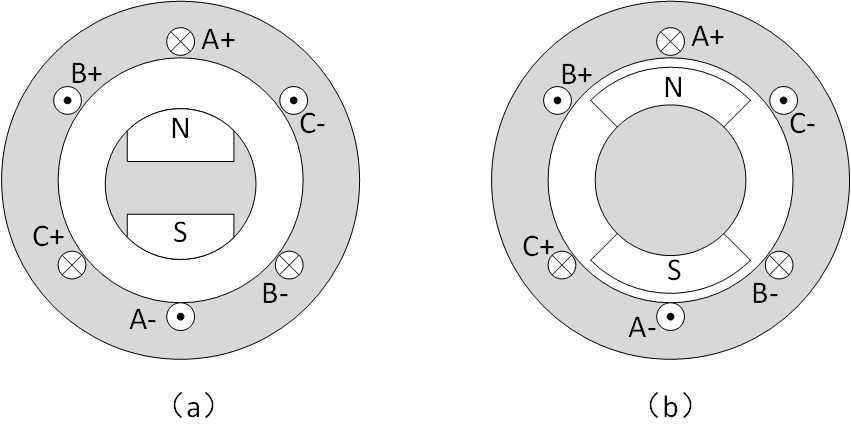 (a):内嵌式电机(凸极电机);(b):表贴式电机(隐极电机)